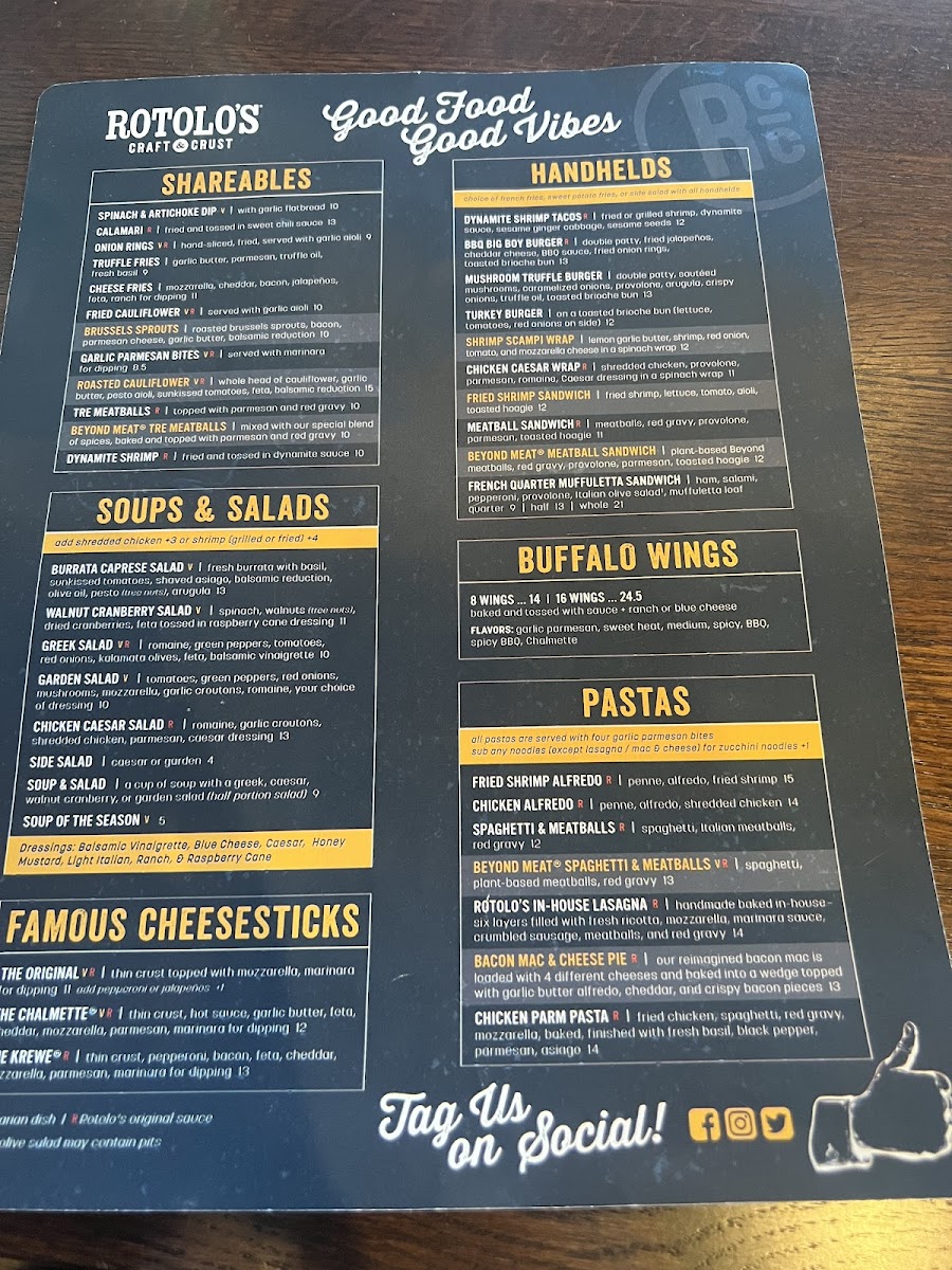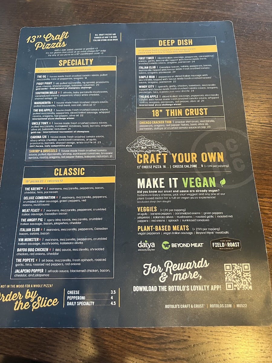 Patrons also recommend the savory wings and suggest pairing pizza with their craft beer selection. Customer experiences emphasize not just the food quality, but also the warm service, creating a welcoming environment for everyone. In a town that appreciates great flavors, Rotolo's Craft & Crust truly stands out. With every visit, you're bound to discover something new and delightful on their evolving menu.