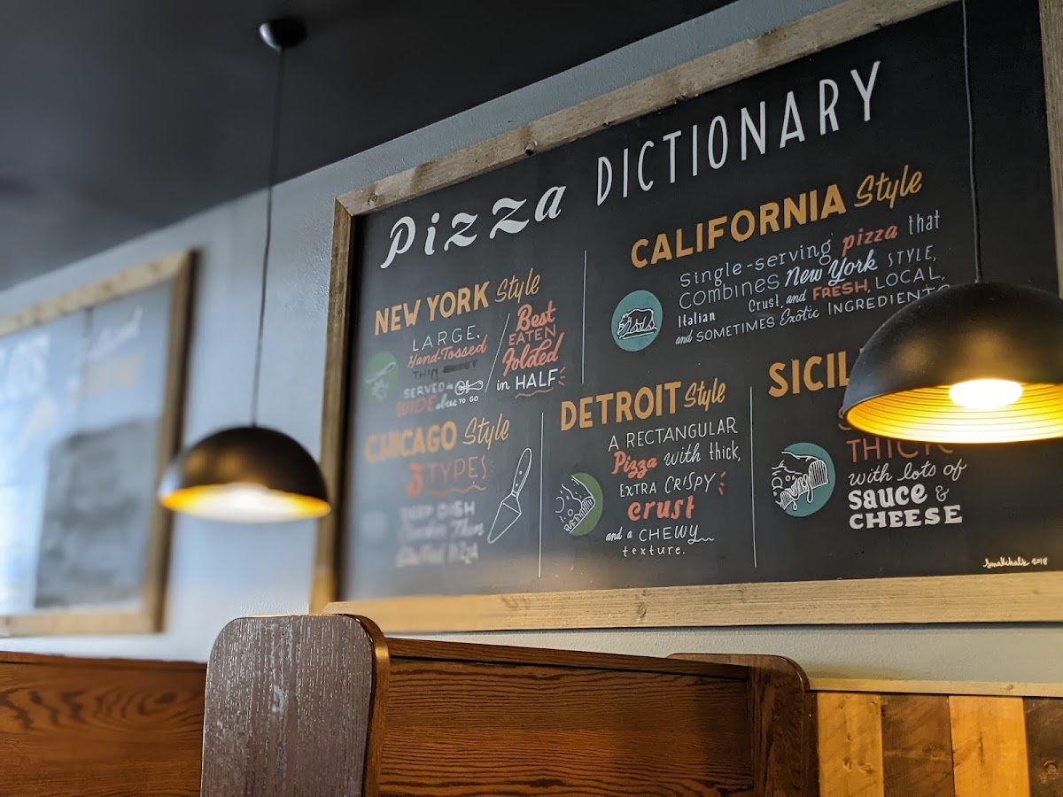 Marinara, mozzarella, pepperoni, bacon, cheddar, feta, and Parmesan. Cooked in a (600oF) Italian stone deck oven.