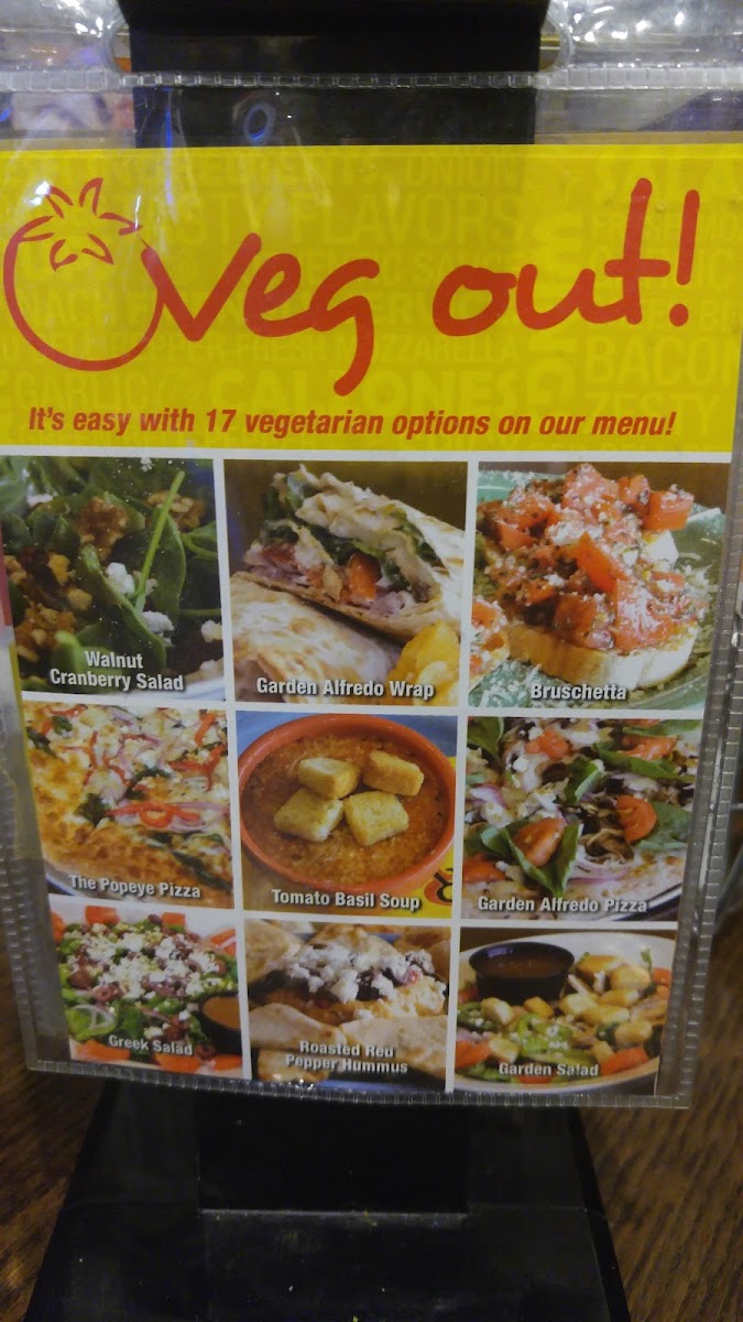 Oil base with fresh spinach, roasted garlic, feta, roasted red peppers, and red onions. *Vegetarian